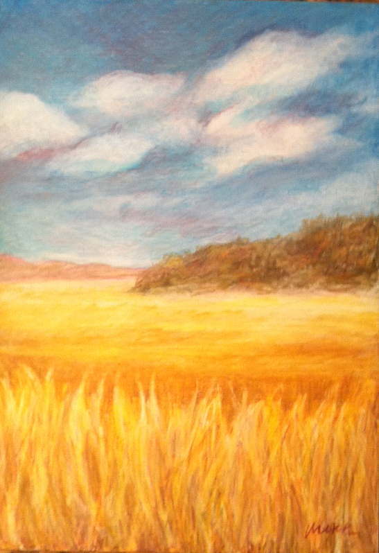 The wood does not take the layers that my favorite substrate for colored pencil – Stonehenge paper – does, but there are possibilities mixing watercolor pencils with regular colored pencil on the wood surface. I used some Derwent Inktense with water in the sky and fields and they work very well to put pigment into the wood surface. Prismacolor and Caran D’Ache Luminacne go over the Inktense after they have dried. I found that the coverage differs among pencils in the brands I have. For example, Prismacolor white did not want to go on other layers, but their Artstix did great. Luminance in general worked OK, but the turquoise blue rocked. I need to do more experimenting, so I went ahead and bought three more 8×10″ American Easel wood panels at my local Blick’s. I don’t think these will take the OCD detail of my toad pieces, so I was thinking about either mounting Stonehenge to them or just going a bit more abstract. Either way, I like these panels and I hope to do some good experiments with them.