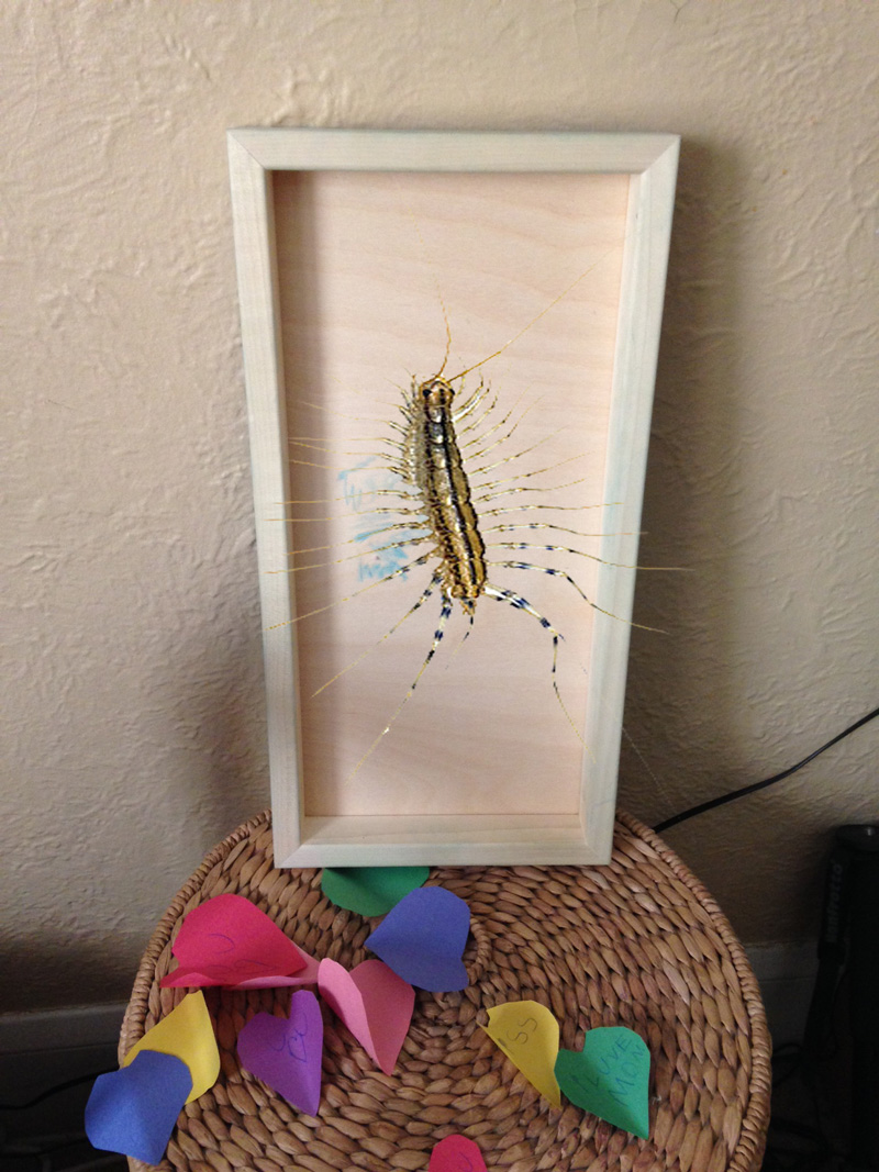 Thank God for my husband @AverageJer for disposing of it for me. If he hadn’t been there, I would have had to spray it with hair spray or throw water on it or some solution that both prevented me from coming in contact with the terrible creature as well as ruining the art.